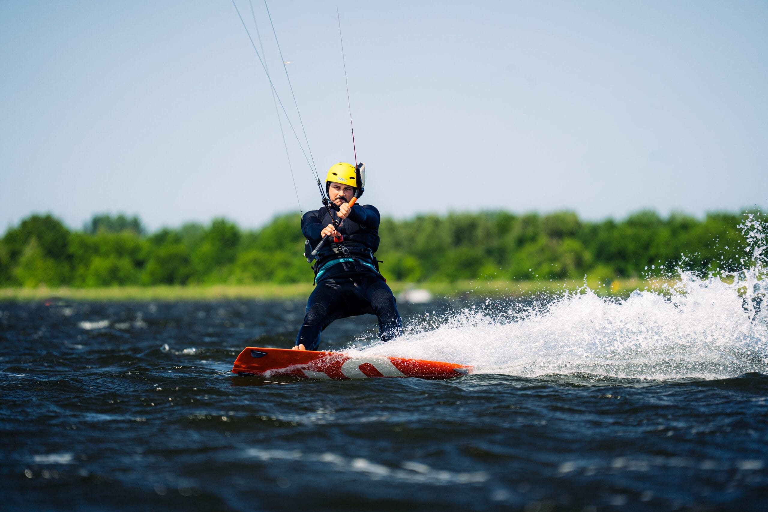 Uczymy zgodnie ze standardami PZKite. Na wodzie korzystamy z łączności radiowej i asekuracji motorówką. Kursanci poznają procedury awaryjne i podstawy bezpieczeństwa jeszcze przed pierwszym wejściem do wody.